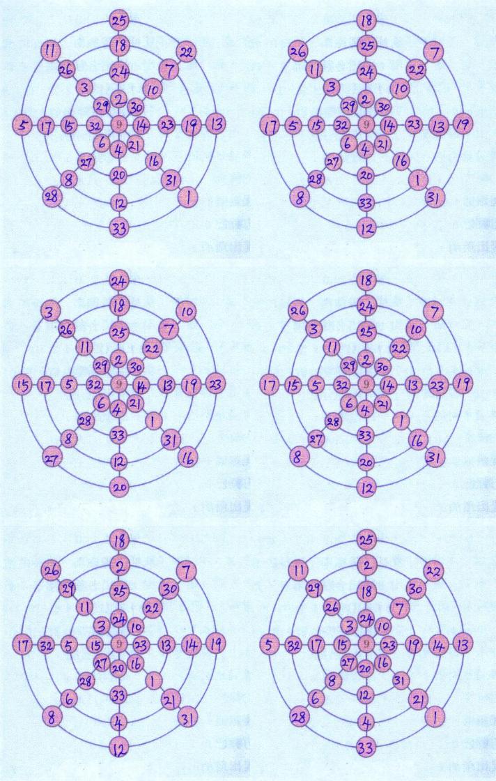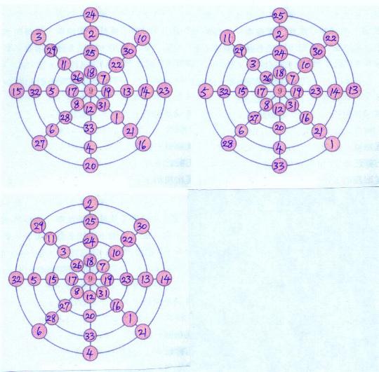 P.S. The above research is to convert a 2-dimensional magic figure into a 3-dimensional magic diagram. In a 2-dimensional magic circle, if we only focus on the outermost circle, the 2 numbers in the directly opposite positions are not connected together. These 2 numbers, however, are connected in a 3-dimensional magic diagram. This is similar to us, human beings, living in a 3-dimensional world (or 4-dimensional if time is included). We cannot pass through wall to go inside a closed room because we are confined to our 3-dimensional world. Jesus Christ, however, entered a closed room without breaking the wall or door to meet his disciples (John 20:19 & 26). Jesus Christ must be in control of some extra dimensions, beyond our 3-dimensional world (or 4-dimensional if time is included).