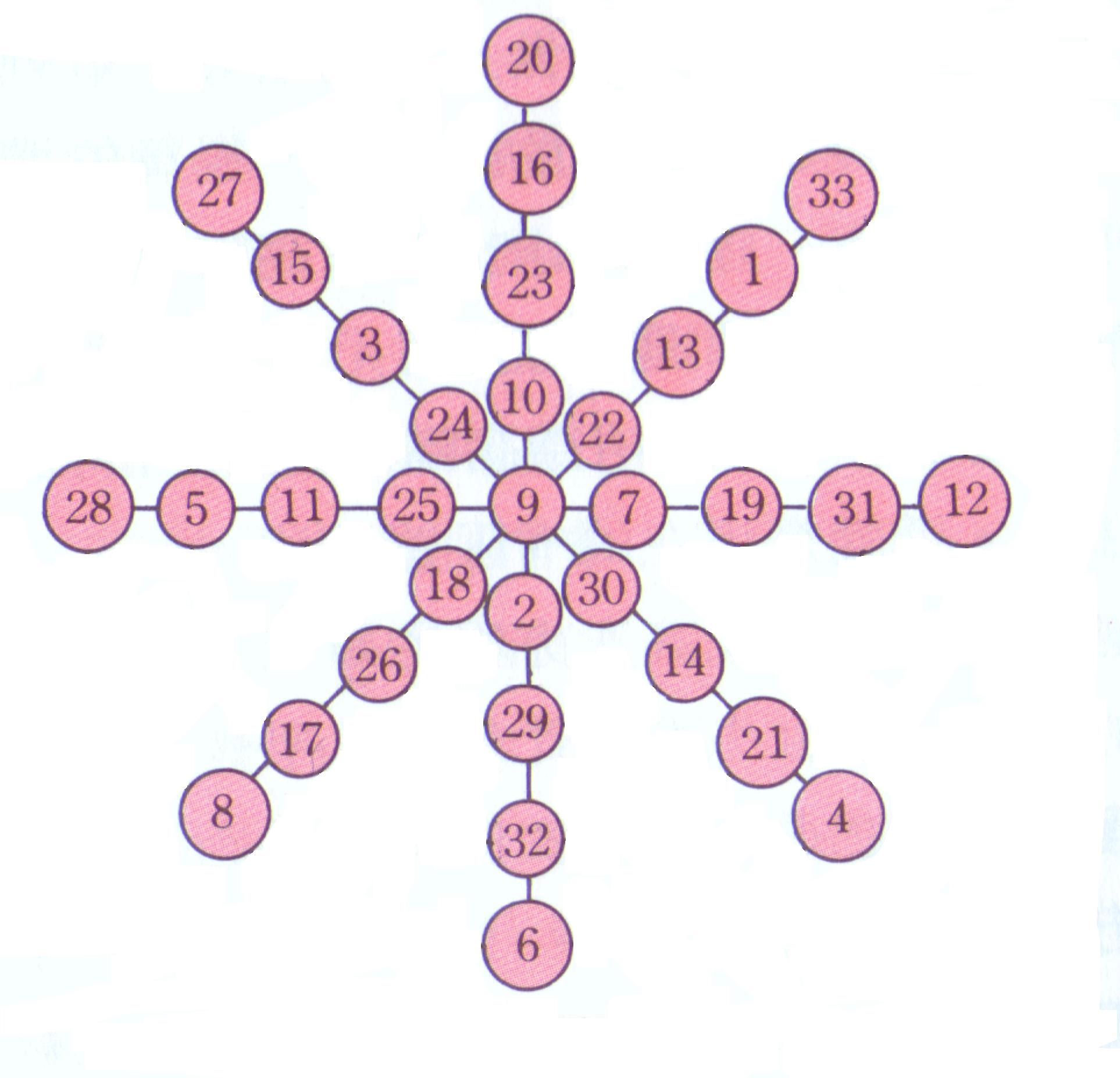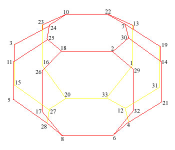 The side octagons (as viewed from one side; the octagon actually is not flat.) are composed of the following numbers: (These numbers are the numbers of 2 adjacent branches of figure 3.)